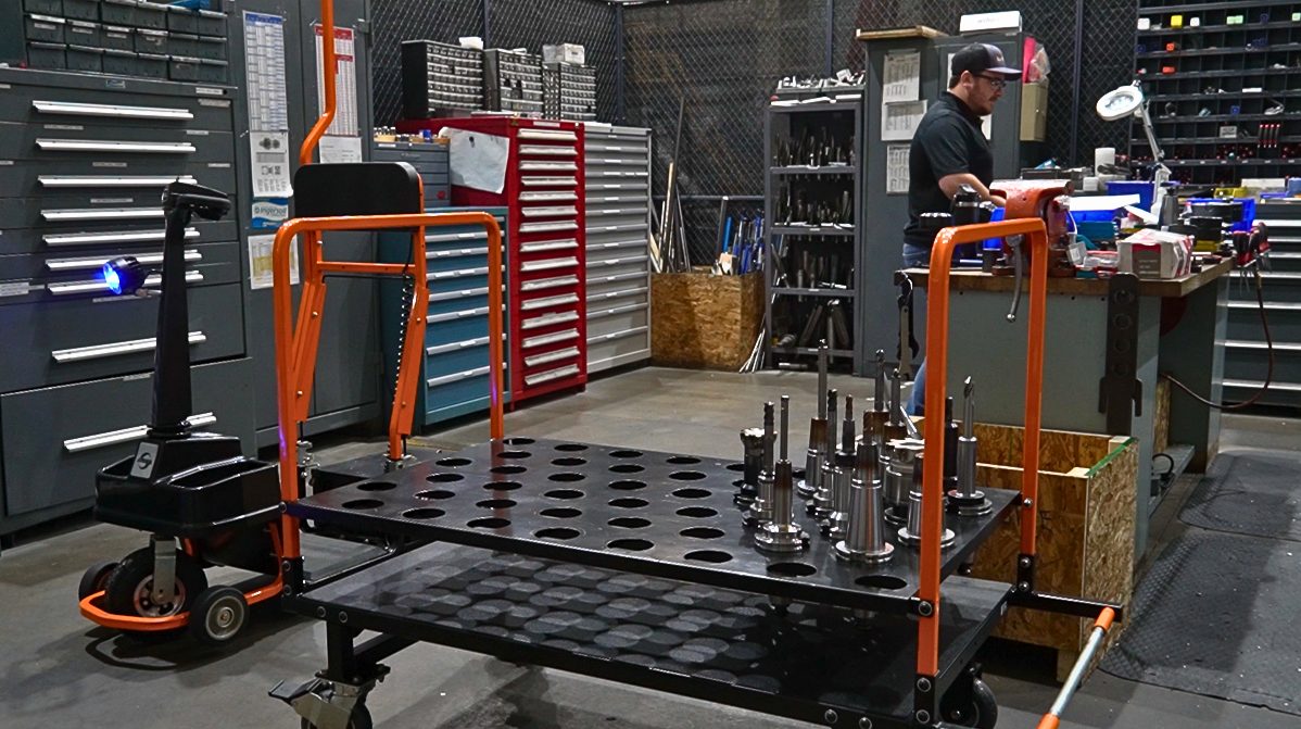 The defense manufacturer specializes in high-precision machining, and transporting tools, packages, and equipment between machines by hand, manual push carts, and forklifts was inefficient.
